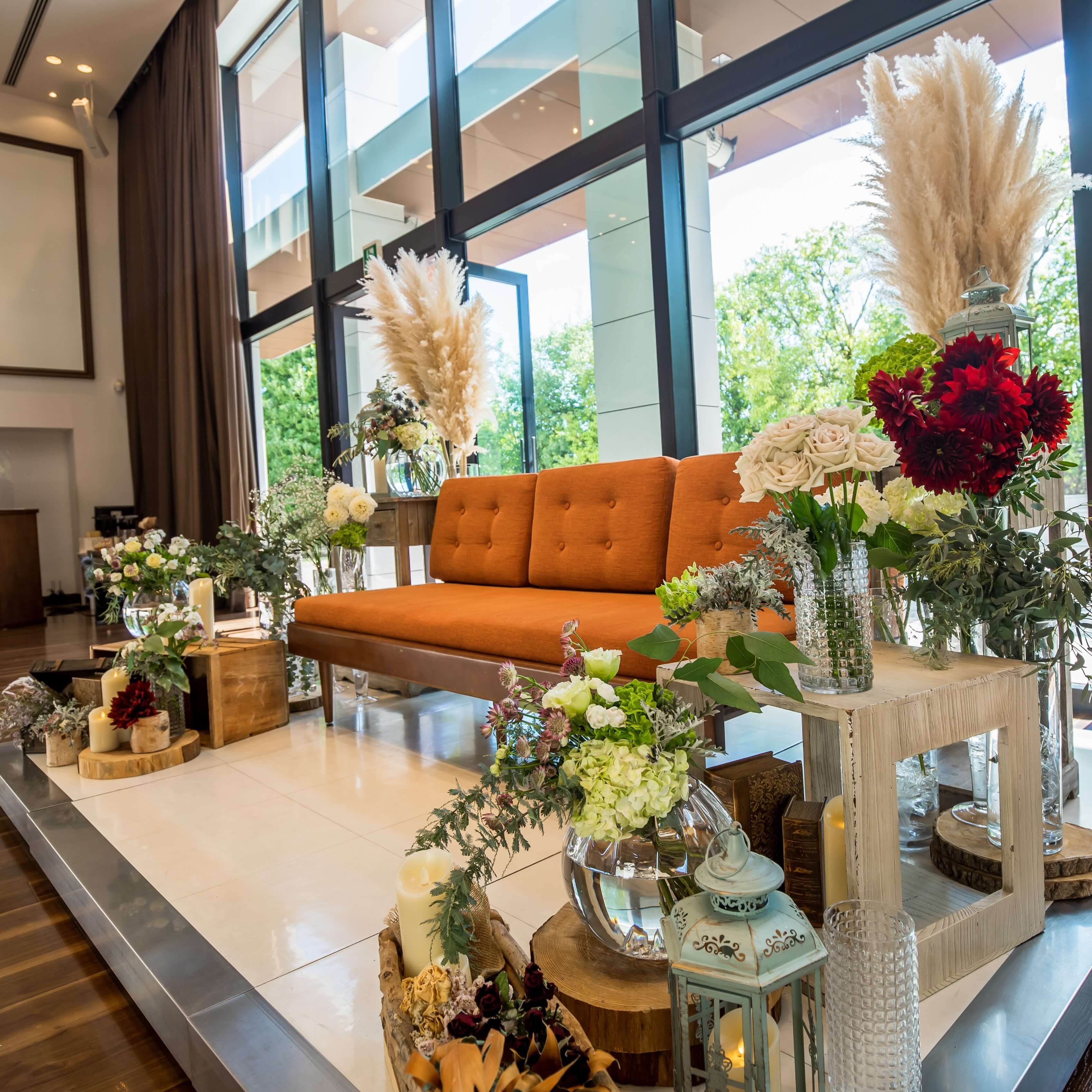 そのほかにはテーブル装花や高砂のデザインにも秋らしく、また式場の雰囲気に合うように打ち合わせを行いました。