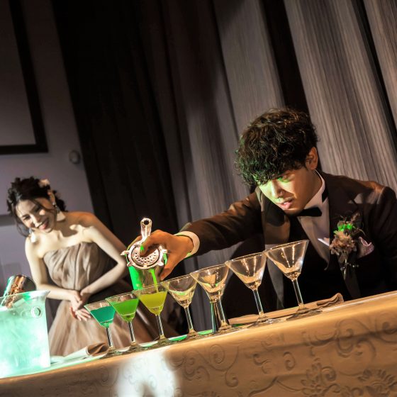 また、ゲストの方々へ向けて新郎新婦によるカクテルパフォーマンスを披露させていただき