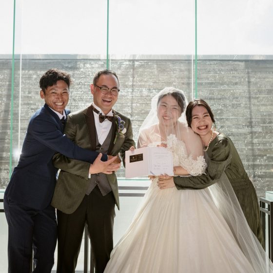私たちの結婚記念日が8月9日で野球とハグにかけていたので、式のテーマもそれにしました( ¨̮ )大人になってからなかなか両親や友人とハグするきっかけも無いので、照れくさい事もありましたがありがとうが伝わったとゲストからも好評でした!