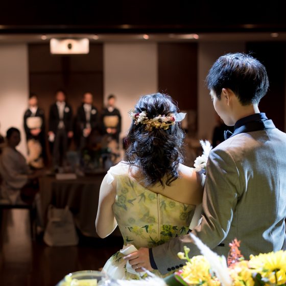 当日、笑顔で一日過ごせたのも、たくさんのスタッフの方々が、私たち2人の思いに寄り添い、温かく対応して下さったからなんだと感じております。ありがとうございました。また、コロナ渦で大変の中、こうして無事に終え、ゲストの方々に喜んでもらえたことが、とても幸せです。友達からも、「凄く楽しかったよ。」「料理がとても美味しかったよ。」等、嬉しい言葉をたくさんもらい、改めて、リーヴスで結婚式を挙げてよかったなと感じております。今までの準備もそうですが、当日も近くで見守って下さり、対応して下さったたくさんのスタッフの方々に本当に感謝しております。ありがとうございました。