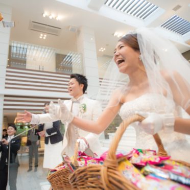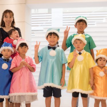 また参列者には子供達がとても多かったので、アフターセレモニーで駄菓子まき、お色直し入場の際には子供達もお揃いの衣装でサプライズ入場という演出も取り入れました。