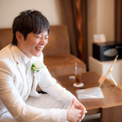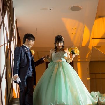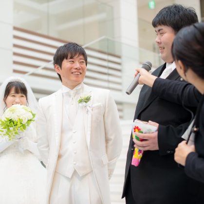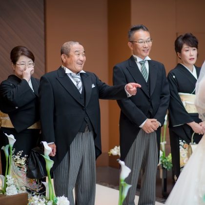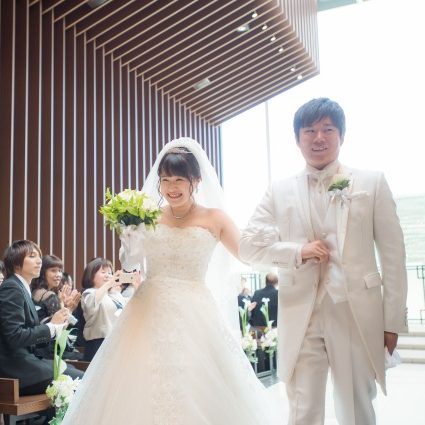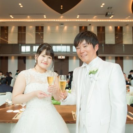完璧に仕上がった状態で迎えた当日。新婦はハイテンションで着替えていたのですが、新郎はすごく緊張していました。覚えたスピーチの練習をひたすらしていました(笑)両親と対面したときに実感が湧いてきましたが、それよりも楽しみたいと思っていました。挙式が始まってゲストの皆様を見たら涙が溢れそうでした。大好きなチャペルで、大切な方々の前で誓えて、本当に幸せものだと思っておりました。披露宴ではサプライズでガーデンから入場しました。当日は台風の影響で予報では雨だったのですが、暑いぐらい晴れまして無事にガーデン入場出来ました。したい演出の1つでしたので、とても嬉しかったです。一番美味しいとおすすめして頂いたウェディングケーキのファーストバイトの前に両親によるお手本バイトをしてもらいました。これが大ウケでした(笑)後半には甥っ子への予告状演出や、ドレス色当てクイズ、最後にはデザートビュッフェのサプライズをしました。どの演出も皆様満足していただけたようでした。本当にあっという間に過ぎてしまったのですが、とても楽しく素敵な1日となりました。したいこと、自分たちらしさ、私たちの理想を叶えることが出来ましたのも、皆様のおかげです。大切な結婚式をリーヴスで行えて、またプランナーさんを始め、スタッフさんと出会えて、良かったです。本当にありがとうございました。