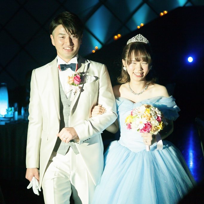 そんな中スタートした挙式から、披露宴の結びの挨拶まで、準備してきたことを1つ1つ思い出し振り返りながら過ごすあっという間の1日でした。ゲストの皆様と話す機会も多く、久々に会う友人とも話せてとても楽しく過ごすことができました。直前までの緊張感や不安はいつの間にかなくなり、笑顔で楽しく私達らしい結婚式を執り行えたと感じています。また私達だけではなく、ゲストの皆様もとてもいい雰囲気でお食事やお話しを楽しんでいて、とても嬉しかったです。