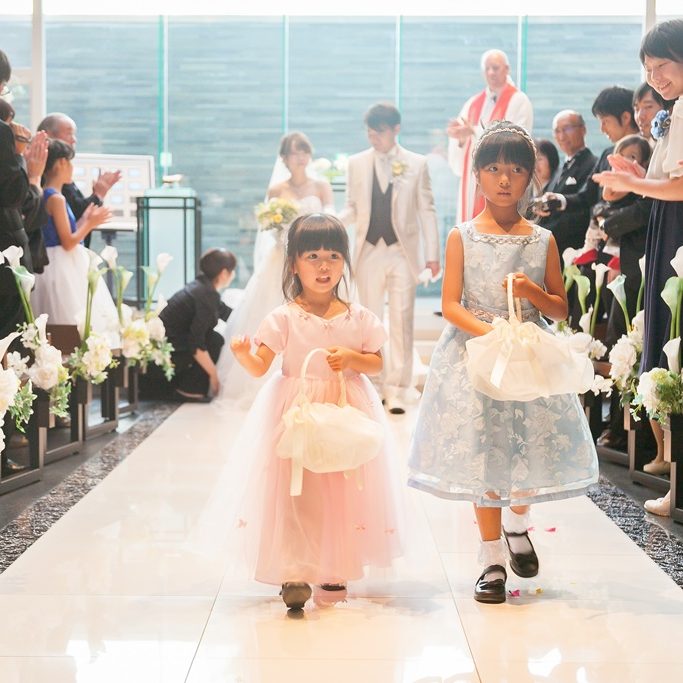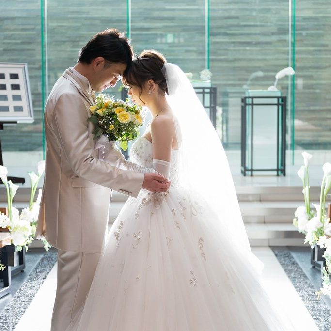 実際に見学に行くと、エントランスの水辺の緑と青のコントラストがとても素敵で、わくわくしたことを覚えています。チャペルを案内していただいたときは、扉を開けた瞬間の眩しく暖かい光に、目を奪われてしまいました。どの空間も私達が想像していた以上に素敵なものでした。