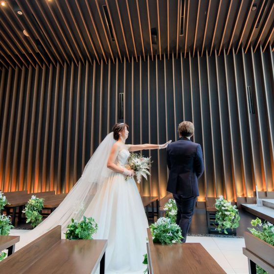 見学に行くと、開放感のある教会に雨天関係無く、室内でセレモニーが全て出来る事がストレス無くて良いポイントでした!