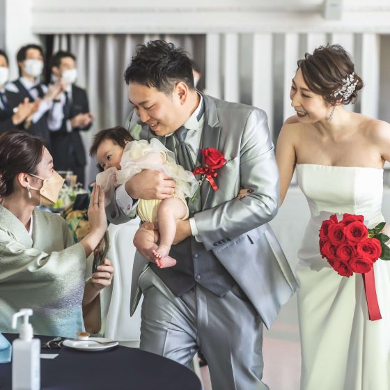 当日は大好きな人達に会うことができ、感謝を伝えられ、沢山祝福していただき、とても幸せな時間でした。結婚式が始まる前のファーストミート、ペアレントタイムはとても感動しました。結婚式はほんとにあっという間でした!スタッフの皆様に臨機応変に対応していただきなにもかも最高で、悔い一つない、かけがえのない1日となりました。
