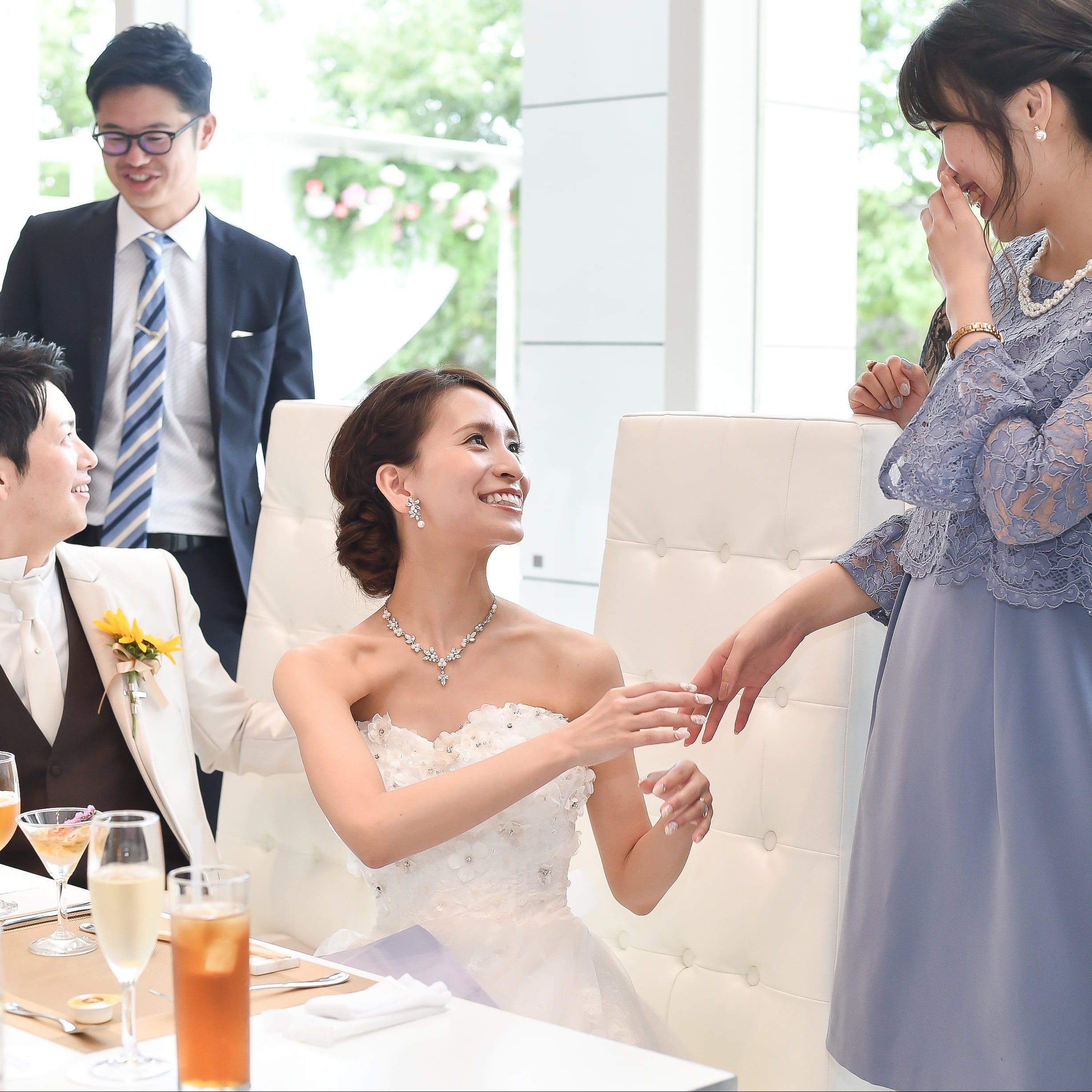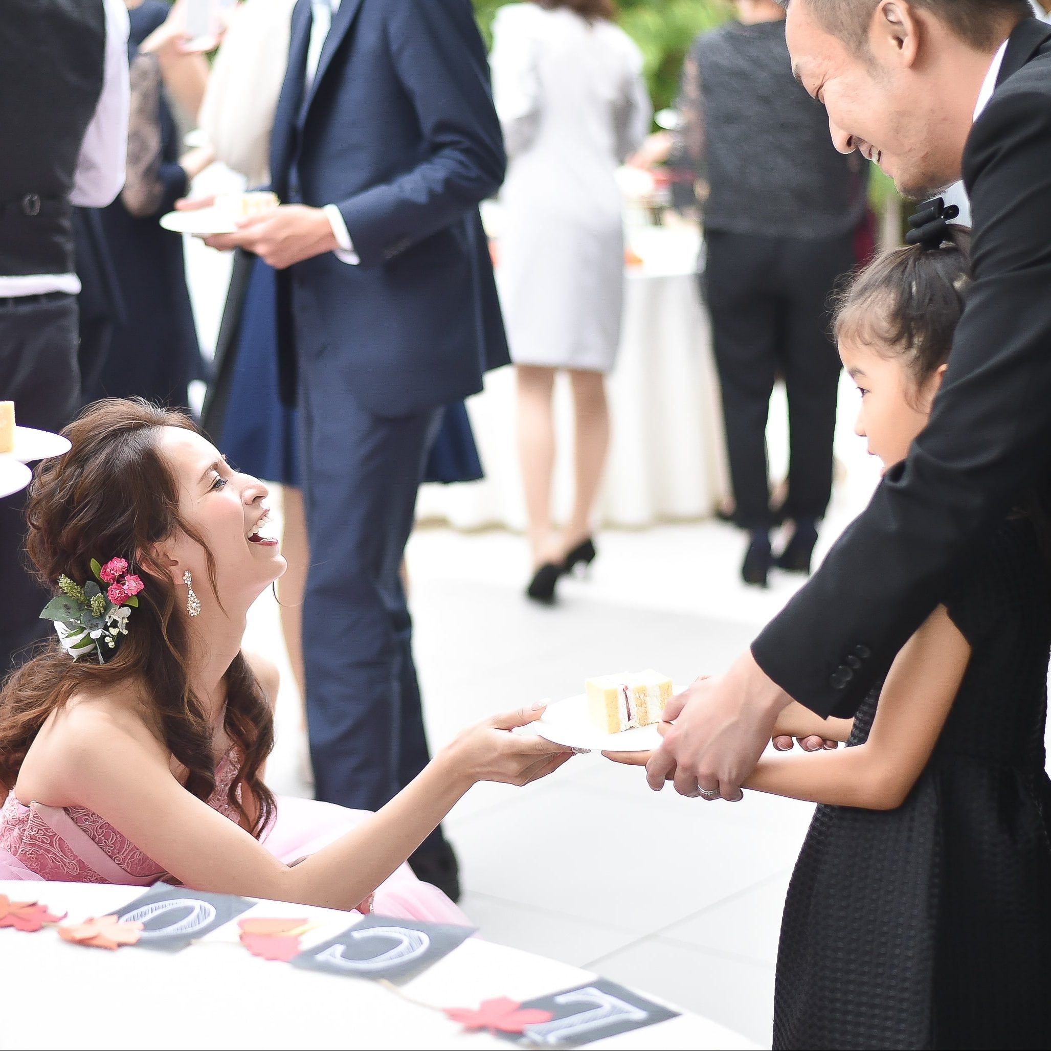 式当日は朝から曇っており、会場へ着く際には小雨が降っていました。そのためガーデンで行うデザートブッフェができるかどうか心配でした。準備に入ると式まではあっという間で緊張感がないままいざ本番になりました。入場の際は緊張しましたが、駆けつけてくれたみんなの笑顔とお祝いの言葉ですぐに緊張もほぐれ楽しむことができました。気が付くとガーデンにてデザートブッフェの時間となっており最後の最後まで本当に楽しく短い時間に感じました。結婚式前日まで準備に追われて大変な日々もありましたが、当日迎えると本当に楽しくて、この日のために準備を頑張ってよかったと思うことができました。2人して「またやりたいね」と思うほどでした。スタッフの皆さんの手厚いサポートと励ましがあり思い出に残る素晴らしい一日になりました。リーヴスで結婚式ができて本当によかったです!ありがとうございました。