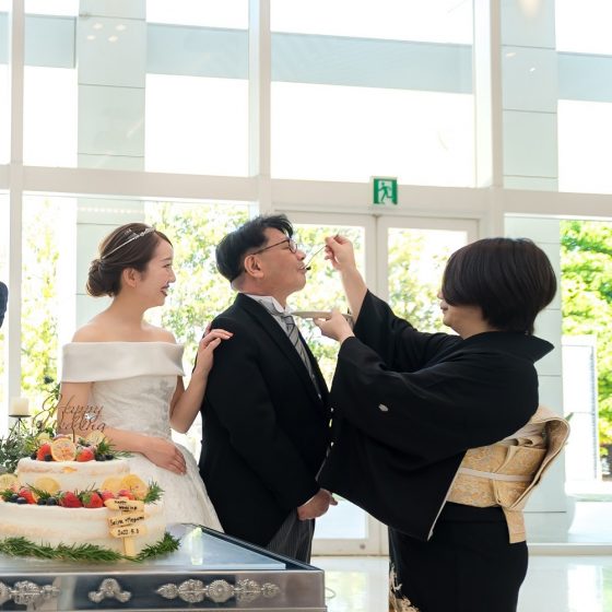 そのテーマに基づき、ゲスト一人ひとりと話す時間を取りたいことをプランナーさんに伝えたところ、式の時間を延長することを提案してくださり、ゲストみんなとゆったりお話しする時間と写真を撮る時間を確保することができました。
