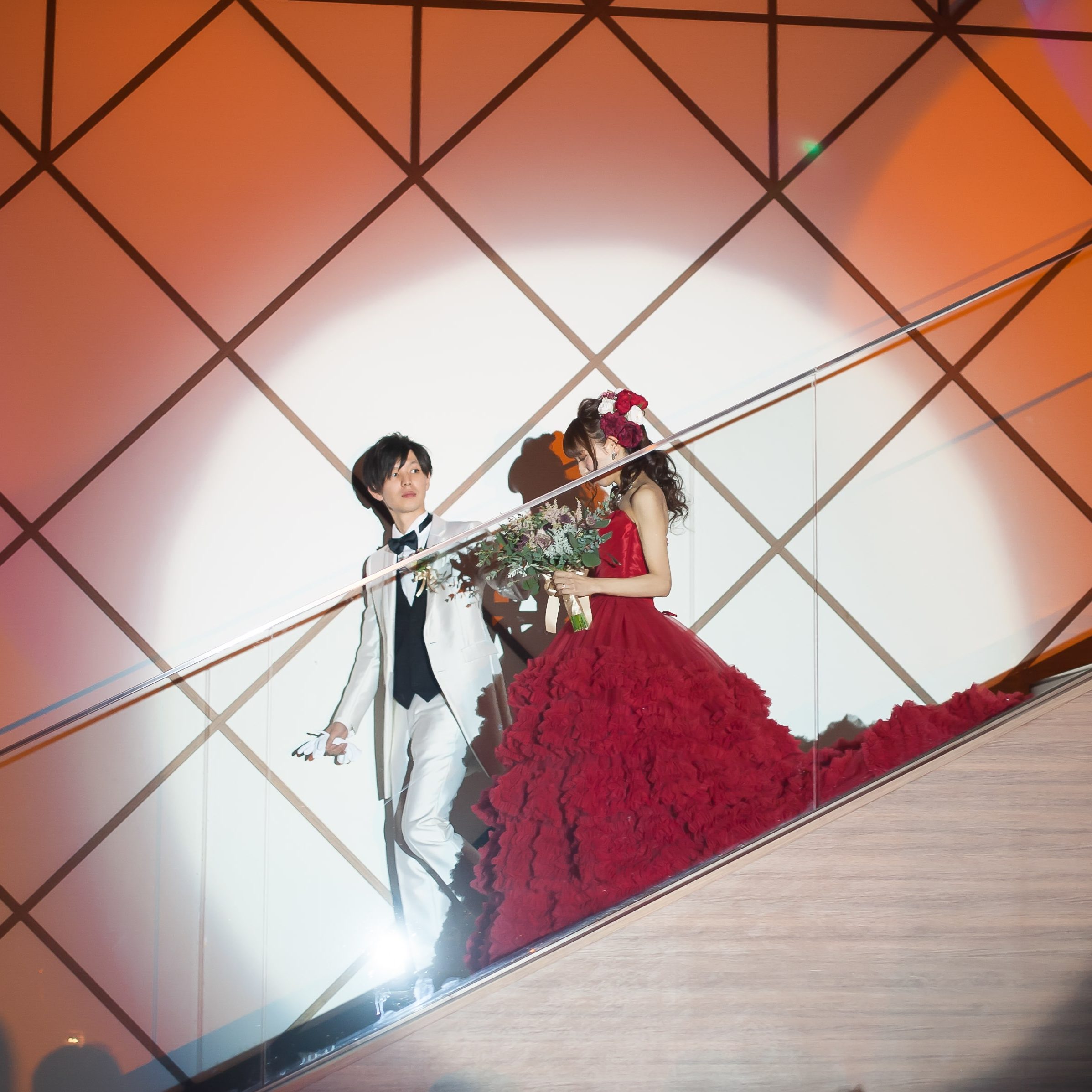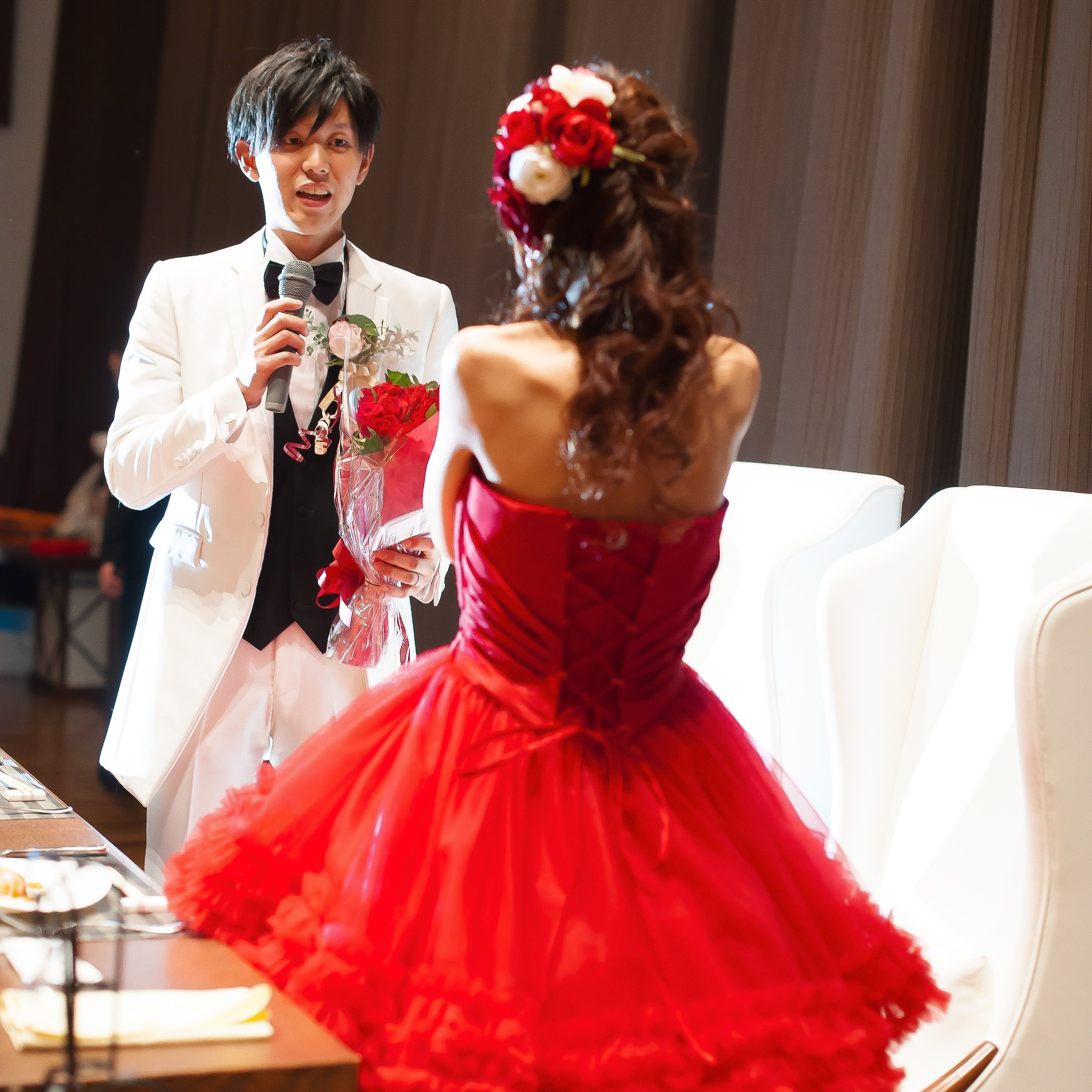 披露宴は楽しみにしていたガーデン入場からスタート。ドキドキワクワクしながら外でオープニングムービーの曲を聞いていました。照明の演出が素晴らしくカーテンが開くと同時に歓声もあがり、私たちが思い描いていた入場ができました。好きなキャラクターのケーキはニヤニヤが止まらないほど可愛く、食べるのがもったいないくらいでした。ハッピーシェアバイトや中座エスコートはサプライズで名前を呼び、ゲストが照れながらも喜ぶ姿を見て私たちも嬉しかったです。