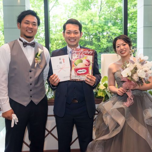 ファーストミートでは、新郎からサプライズでバラの花束をもらったり、ウエディングプロデューサーやたくさんのスタッフの方々、そしてゲストの皆さんが「おめでとう」と言って笑顔になってもらえたりなど、小さい頃から夢だった結婚式ができて本当によかったと思います。