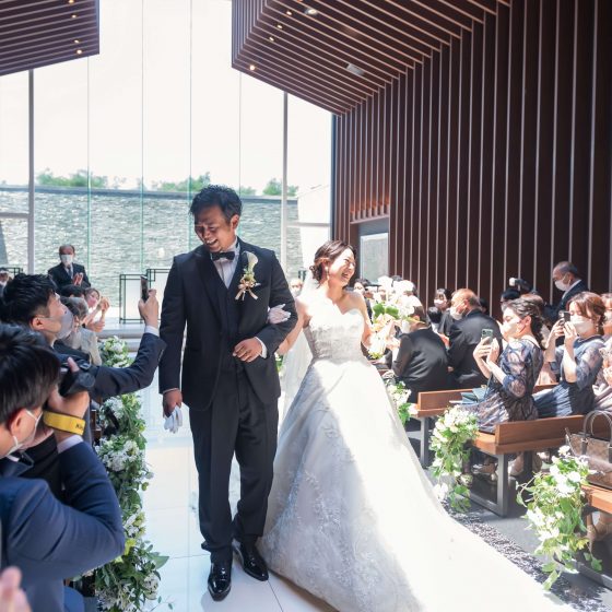1番の決め手はチャペルでした。シンプルで開放感があるというところに一目惚れをしました。また、挙式入場前に、普段恥ずかしくて伝えてこなかった両親への感謝の気持ちを伝えることができる映像があること、そしてその場には3人だけの雰囲気を作ってくれるなど、恥ずかしがり屋な私にはすごく大切な時間が作れそうと思ったのを覚えています。