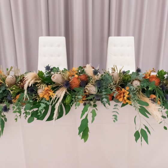 ・会場装花は海外風ウェディングをイメージしたお花を使っていただきとても素敵で満足いく仕上がりでした。私たちの好みを理解してくれ、お花やコーディネートの打ち合わせもとても細かく対応していただけました。