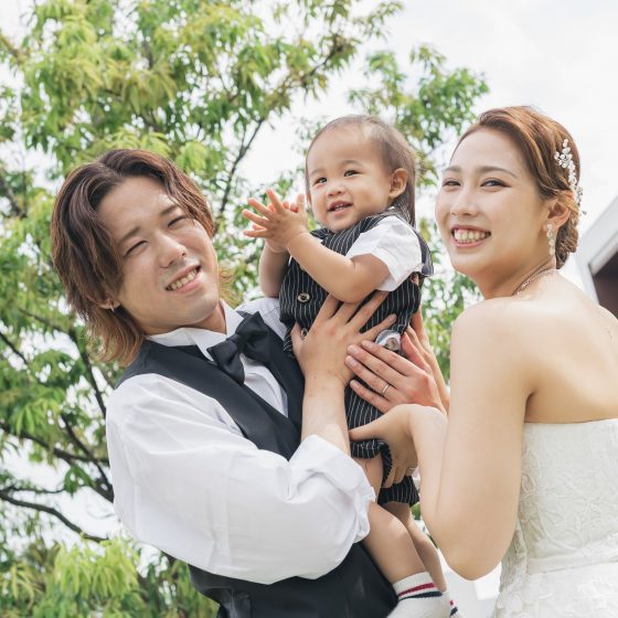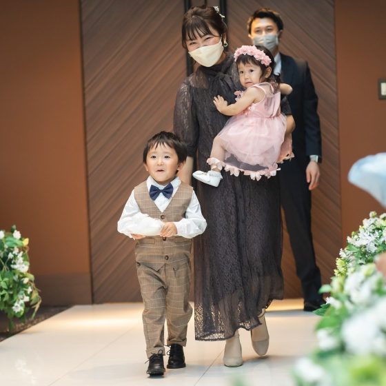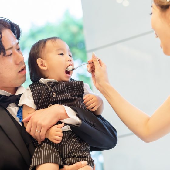 ゲストと過ごす時間・歓談をできるだけ多く取り入れたり、私たちに子どもが居たので、披露宴入場やお色直しの時も子供と一緒に着替え再入場をしたりと、子どもと一緒に過ごせる進行にもいたしました。