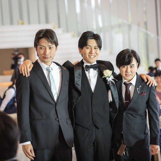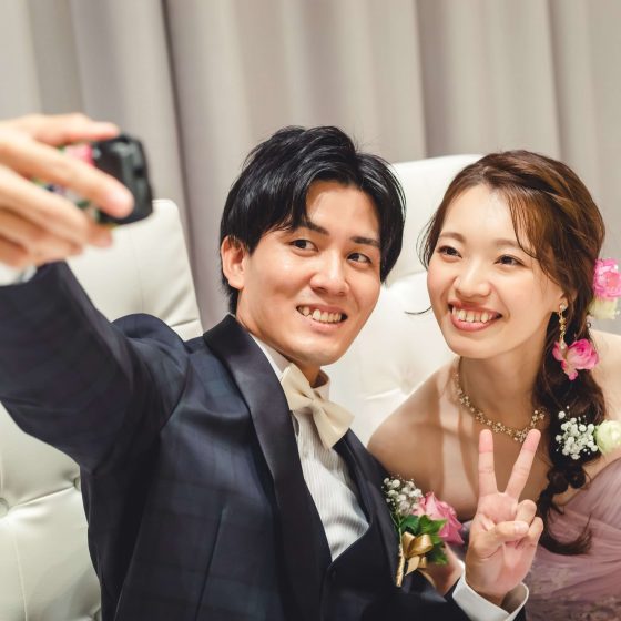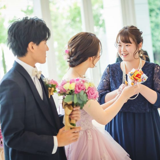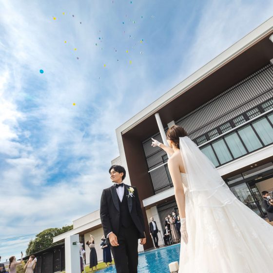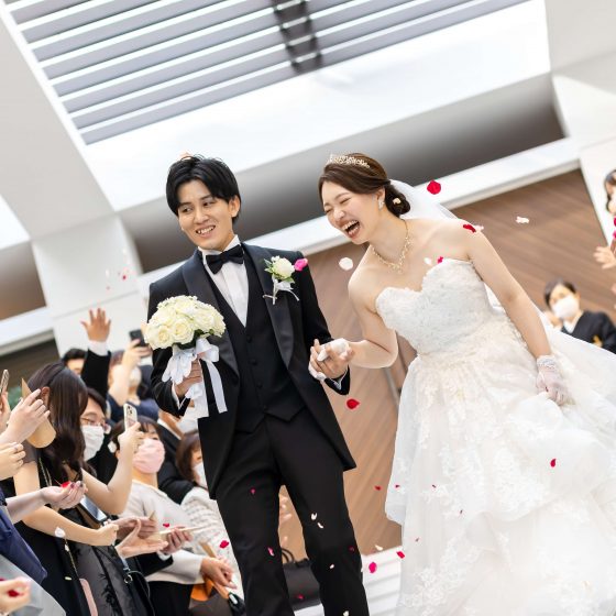 挙式が結び、ゲストに楽しんでもらうために用意した幸せのおすそ分けお菓子撒きやドロップ&フライは後で感想を聞くと大変好評で、笑顔溢れる素敵な写真をたくさん撮ることができました。