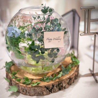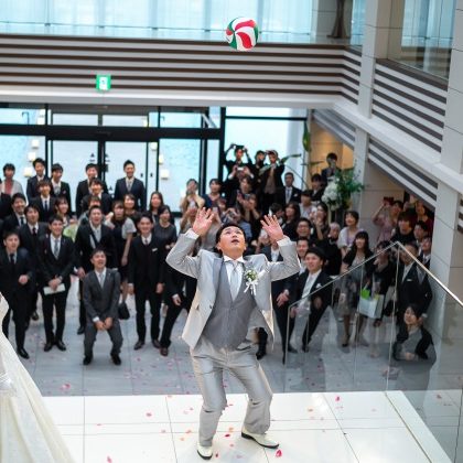 どの時間もゲストの皆さん一人一人が楽しく笑顔になれるような式を目指して担当プランナーさんと打ち合わせを行いました。特にこだわったのは、ゲストへ向けてサプライズを要所要所で行うことでした。私たちの思う漠然とした思いつきをキャストの皆さん全員で考えてくださり実現可能な具体案として提示してもらえたおかげで、当日のサプライズはどれも大成功!その中でも余興を両家の家族にお願いをし、新郎の父が所属するジャズバンドの皆さんとフルートをやっている新婦の妹に演奏してもらえたことは大きなサプライズのひとつとなったと思います。芳名カードを投函できるポストやフォトプロップスを手作りしたり、会場の飾りつけにもこだわりました。また食べることが趣味の私たちは、ゲストの皆さん全員に全てのメニューを美味しく食べてもらいたいとの思いがあり、アレルギー以外にも苦手な食材にまで配慮していただけたことがとても嬉しかったです。