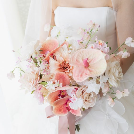 "プリンセスになれる最初で最後の1日。めいっぱい楽しむぞ!"と心に決めて迎えた当日。大好きを詰め込んだブーケも会場装花も可愛くってうっとり。