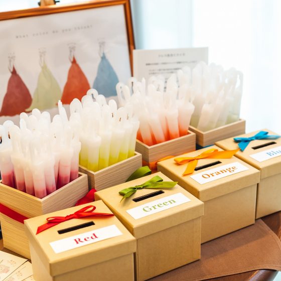 ドレスカラー当てクイズ、友人インタビューなど、ゲスト参加型のカジュアルな演出を多く取り入れて、楽しい空間づくりにこだわりました。
