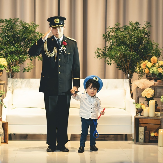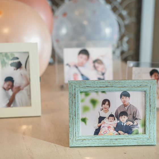 こだわった事は、ウェルカムスペースの受付のグラスやハートドロップスを手作りしたこと、お色直し時の子どもの服も手作りしました。「家族での結婚式」をテーマとしていたので子どもも一緒に着替えて登場しました。