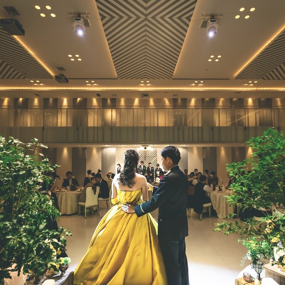 リーヴスに決めた理由は清潔感があり、チャペルの天井がガラス張りになっていて光が入ってくるととても綺麗だったこと、披露宴会場に階段があること、バリアフリーになっていること、そして見学に行った際沢山のスタッフの方々が明るく、笑顔で接してくださったことが決め手です。また、料理も美味しく参列者の方にも喜んでいただける味でした。プロジェクションマッピングや入場前に両親に思いを伝えられる演出にも感動しました。