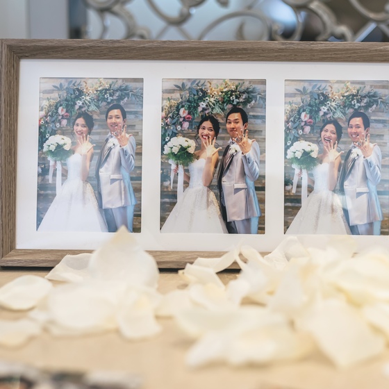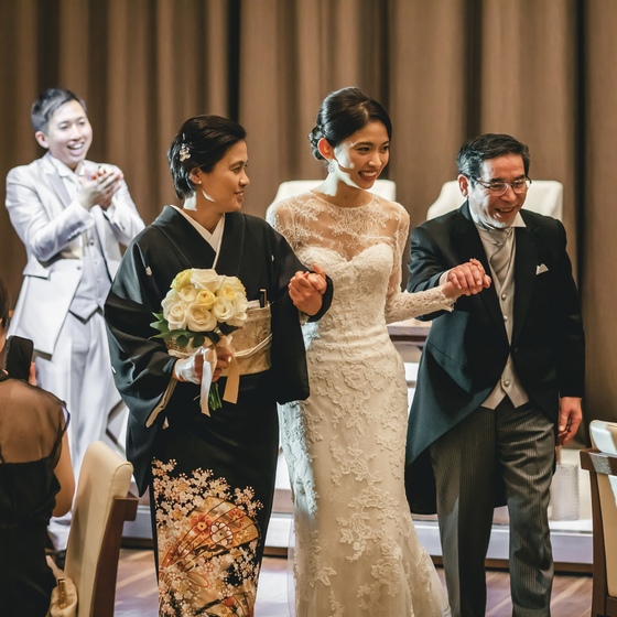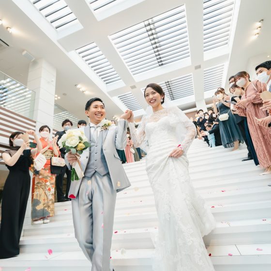 当日は本当にあっという間でした。曇り予報でしたが奇跡的に晴れたため、チャペルの扉が開いた際に青空が見え、とても感動しました。このご時世でしたが結婚式をやり、両親や親戚、同僚・友人のみんなの前で誓い、みんなに祝福され慶ばれ、幸せな気持ちで一杯でした。また、みんなに感謝を伝えられてよかったです。当日まで支えて下さったプロデューサー、スタッフの皆様ありがとうございました。