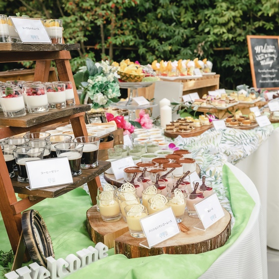 試食会で食べたお肉料理と付け合わせの野菜、デザートビュッフェに惚れ、絶対にいれたいと思いました。ゲストからも料理もデザートもおいしい!と言っていただきました。
