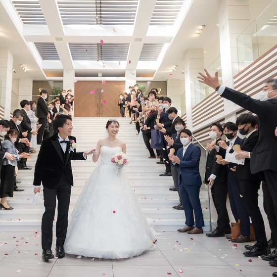 始まる前は少し緊張もありましたが、チャペルの扉が開いてゲストの方々の笑顔を見た瞬間、緊張も吹き飛び、一瞬一瞬を心から楽しむことができました。たくさんの方々に祝福の言葉をかけていただき、最高に幸せな1日になりました!