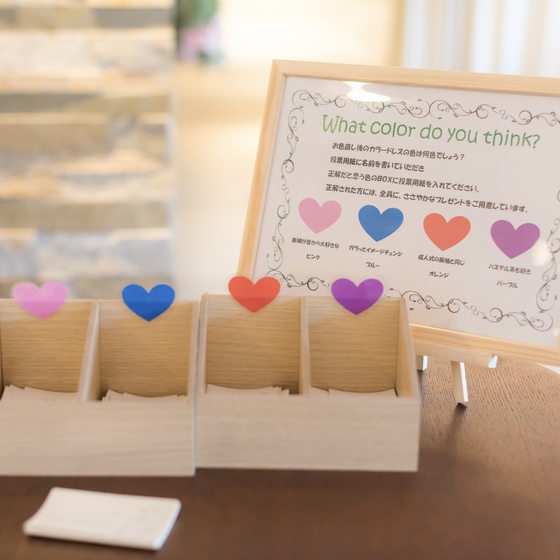 ドレスの色当てクイズも行い、正解した人に喜んでほしくて、正解者には全員にコーヒータイムセットをプレゼントしました。