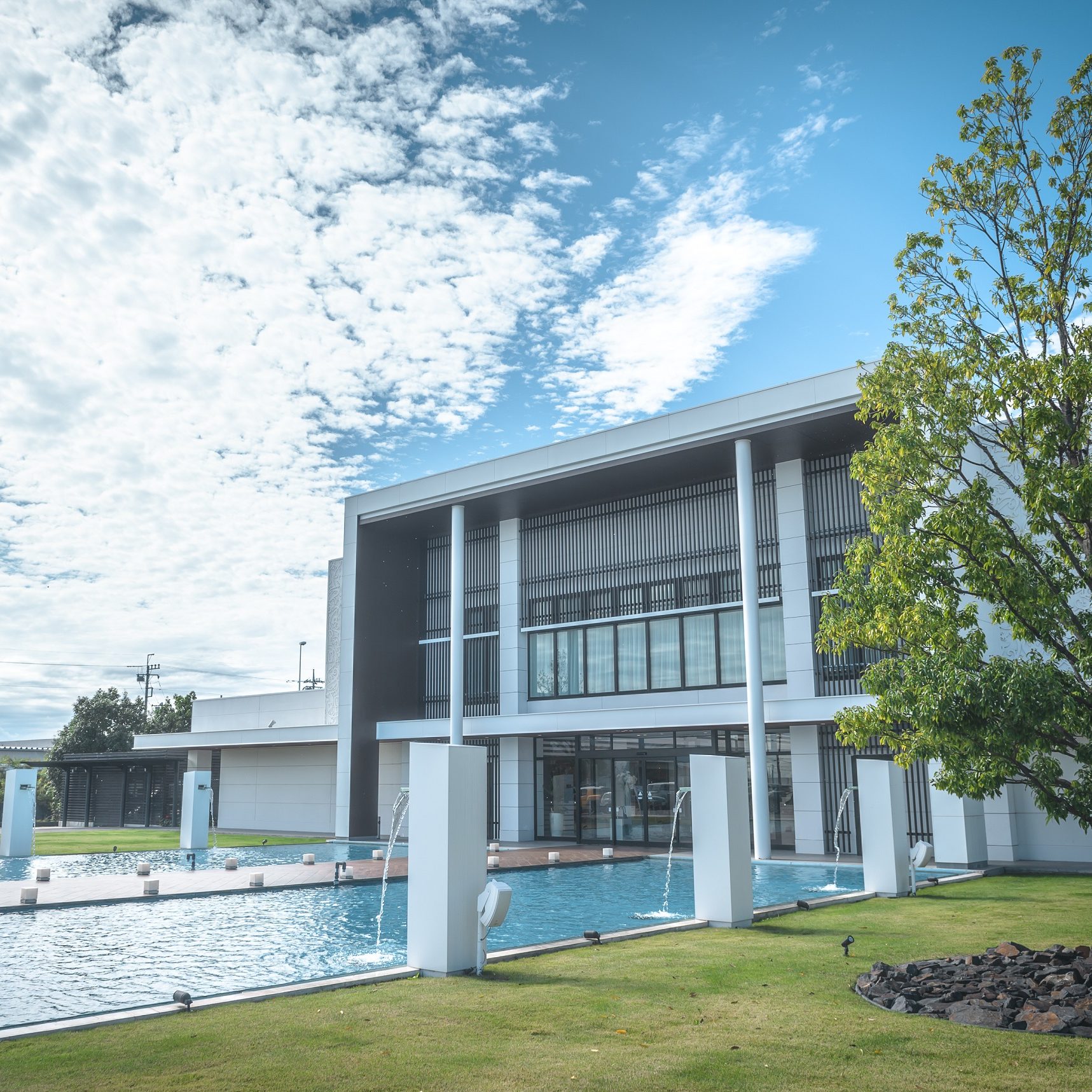 水の流れる音を聞きながら白く明るい開放感のあるエントランスにとてもワクワクしたのを覚えています。