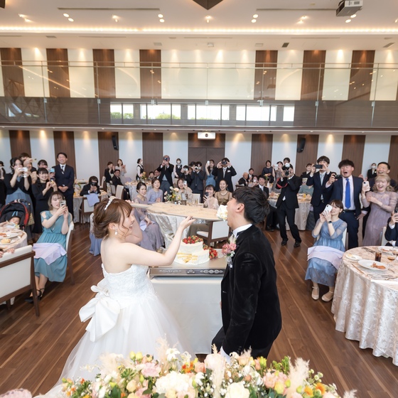 結婚式の中で「マタニティウェディング」だからこそできる特別なことをしたいと思い、ちょうど結婚式の少し前に赤ちゃんの性別が判明する予定であったため、披露宴の中でゲストの家族や友達みんなへ赤ちゃんの性別発表を行うエンジェルハートという演出を取り入れました!ゲストみんなも盛り上がってくれ、最高な思い出となりました。