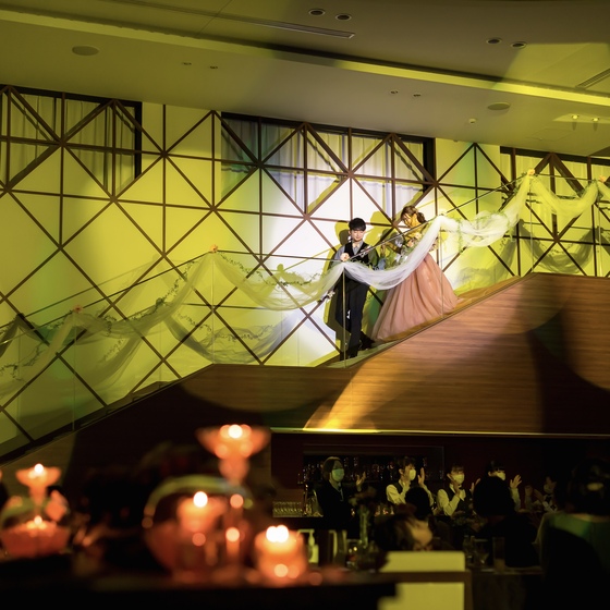 白い大階段に青空と水が降り注ぐチャペル、ガーデンのある披露宴会場、披露宴でのマッピング上映が可能な点、料理が美味しいなどリーヴスは私たちが理想としていた結婚式場であると思ったからです。