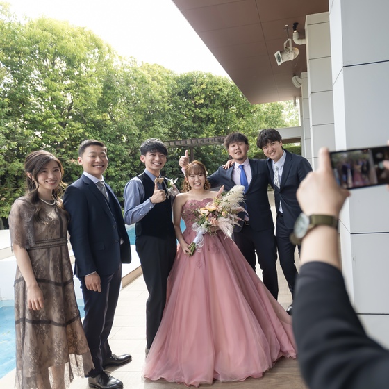 終始、大好きなご家族様・ご友人様との距離が近く、おふたりのキラキラの笑顔が印象的でした!