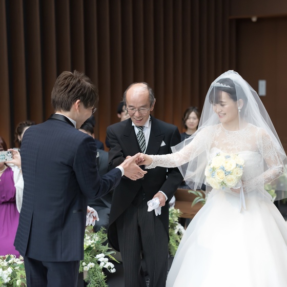 程よい緊張感で本番に臨みました。緊張から手順などを間違えることも若干ありましたが…それも含めて、思い出に残る結婚式になったと感じています。
