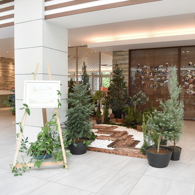 1点目のウェルカムスペースは、主人が生産している珍しい品種のクリスマスツリーや苗木を使い、ナチュラルガーデン風に一から作りあげて、写真映えのする空間を作った事でたくさんの方に楽しんでいただけました♪