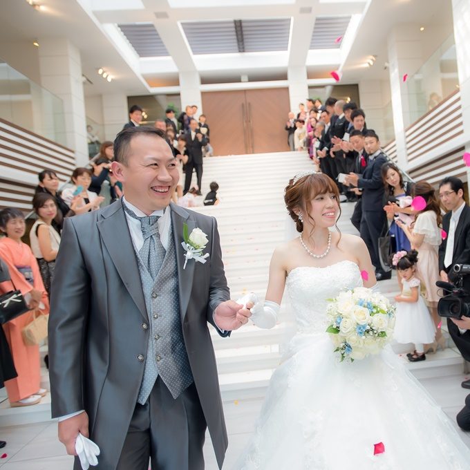 当日は、晴天に恵まれて11月としては、暖かくとても良い気候で無事に結婚式を挙げることができて本当に良かったです。緊張の1日でしたが、ゲストの方々といろいろ話したり、写真を撮ったりしたこと本当に楽しい1日となりました。衣装に着替えて、ブライズ撮影が始まり、実感が湧いてきてますます緊張でいっぱいでした。ペアレントタイムでは、扉が開いた瞬間、涙が止まりませんでした。挙式は、緊張いっぱいであっという間に終わってしまいましたが、憧れのチャペルで皆さんに祝福され、嬉しい気持ちでいっぱいでした。披露宴では、写真を撮ったり、話しをしているうちに緊張もほぐれて、楽しくなってきました。中でも、デザートビュッフェは、たくさんの人に好評で、美味しかったよとお褒めの言葉をいただきました。ゲストの方々から本当に良い結婚式だったと言ってくださり、嬉しかったです。最高の結婚式が挙げられたのも、担当プランナーさんをはじめ、全てのスタッフさんに感謝です。約10カ月間、式当日まで本当にあっという間でした。私たちの希望どおりの結婚式にしていただき本当にありがとうございました。リーヴスで結婚式ができたことが何より自慢です。リーヴスにして本当に良かったです。大変お世話になりました。