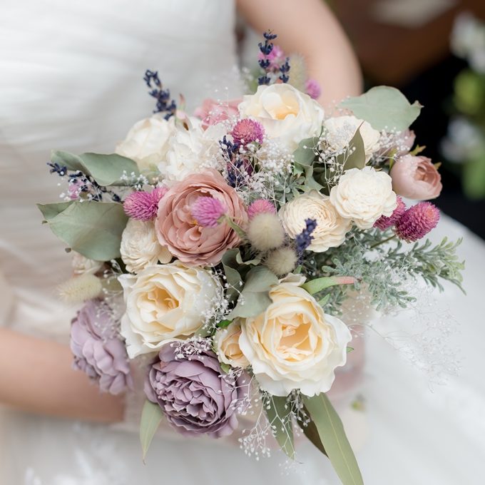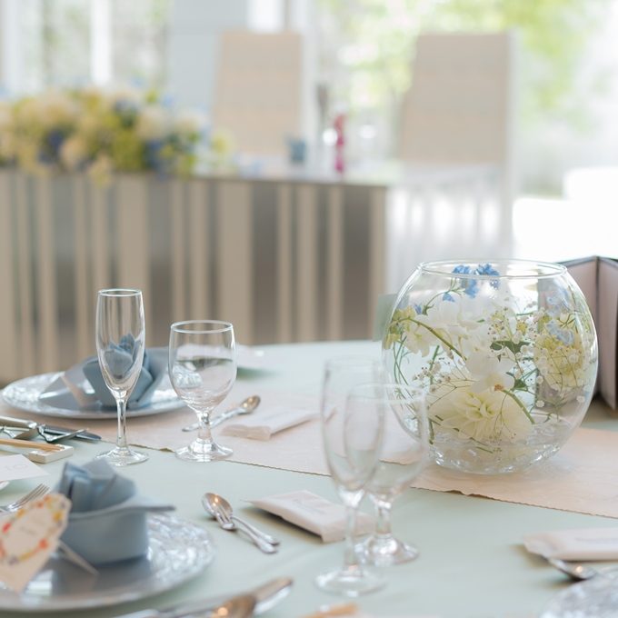 私自身、淡い色が好きで、ブーケや会場内の色も淡いパステルカラーっぽく統一したのも