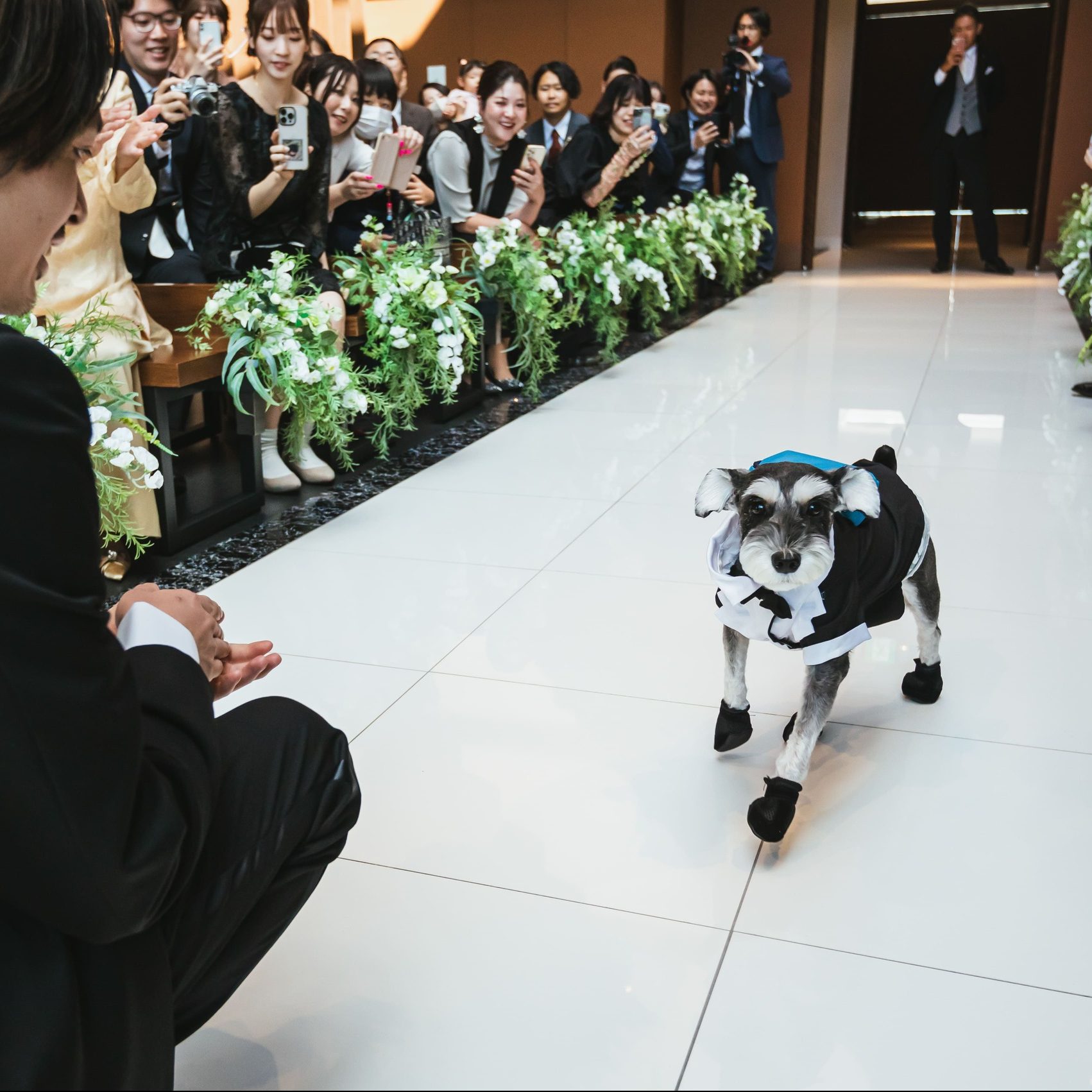 1番に演出ではうちの愛犬「トム」にリングドックをお願いしたかったので、リングを届けてくれるか心配でしたが、無事に参列者に挨拶しながらも届けてくれて一安心でした(笑)