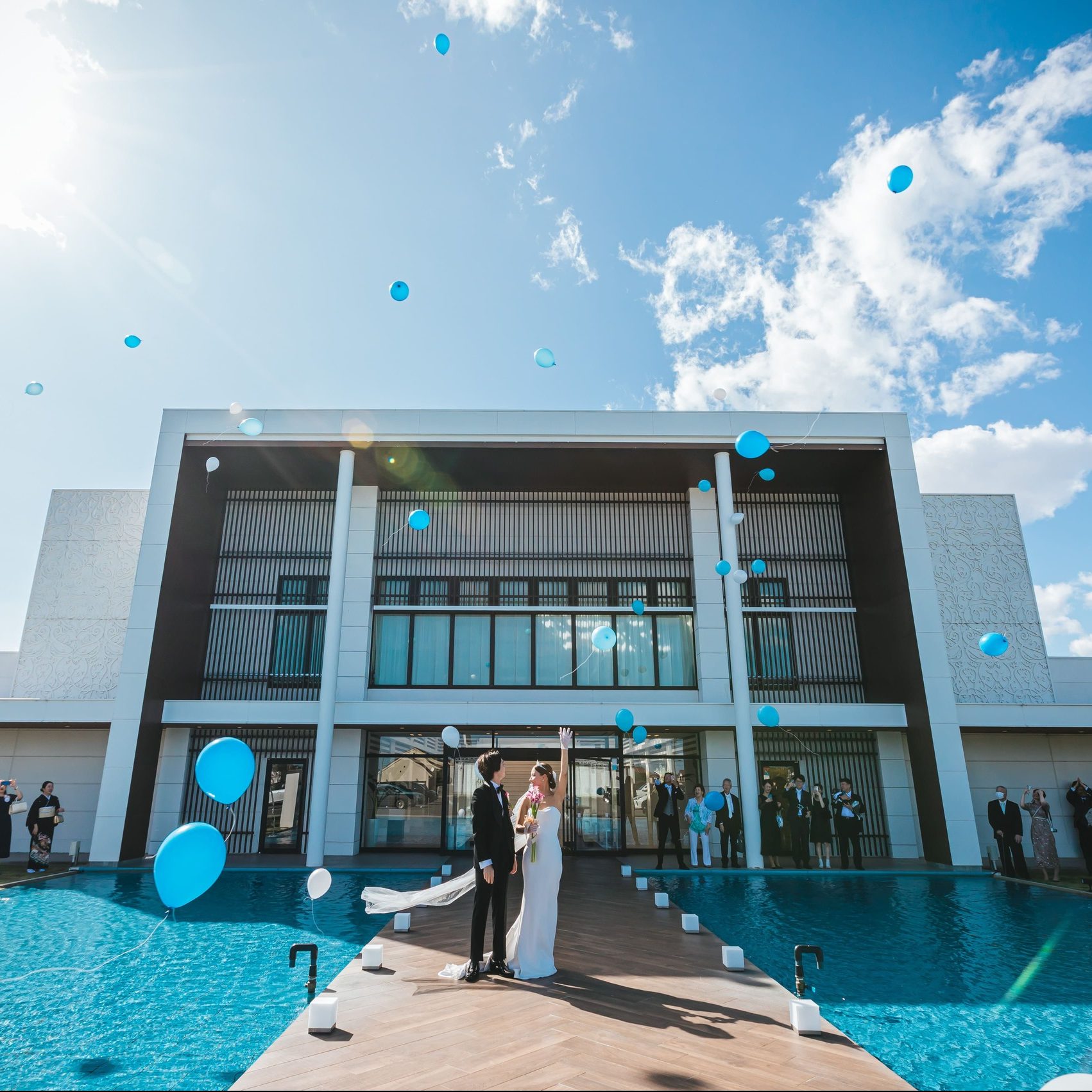 式場を選ぶにあたって、私たちが重視したのは、シンプルで水辺やプールがあって、summer・リゾート挙式の雰囲気が作れるような式場を探していました。