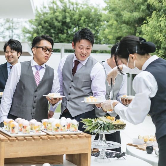 スタッフの方と話しているうちに、人柄の良さやどんな質問にも丁寧に答えてくださる親切さに惹かれて、ザ・リーヴス プレミアムテラスで結婚式をするイメージが湧きこの場所で結婚式をしたいと決めました。