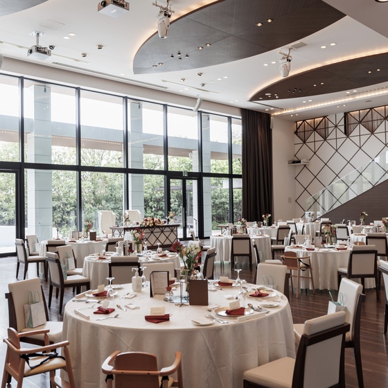 披露宴会場のアクアもガラス一面で明るく、見学中にどんどんやりたい事がひらめきました!