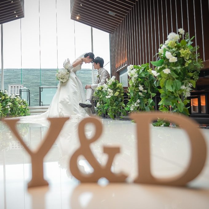 実際に式場を見学して、シンプルで明るく綺麗な雰囲気がとても気に入りました。6月の結婚式なので天気を心配していましたが、リーヴスなら全て屋内で行えること、雨や曇りでも会場内が明るいことでその心配はなくなりました。また、親族に高齢の方がいることを考えると、館内がすべてバリアフリーで移動しやすいことも魅力に感じました。見学の際にお料理の試食もさせていただきました。お料理がおいしくてお肉も柔らかく、ゲストの方々にもぜひ召し上がっていただきたいと感じました。インターネットで調べたり、リーヴスで結婚式を挙げた知り合いから話を聞いたりして、見学前からリーヴスで結婚式を挙げるつもりでしたが、実際に見学に行きもうここしかない!と確信してリーヴスに決めました。