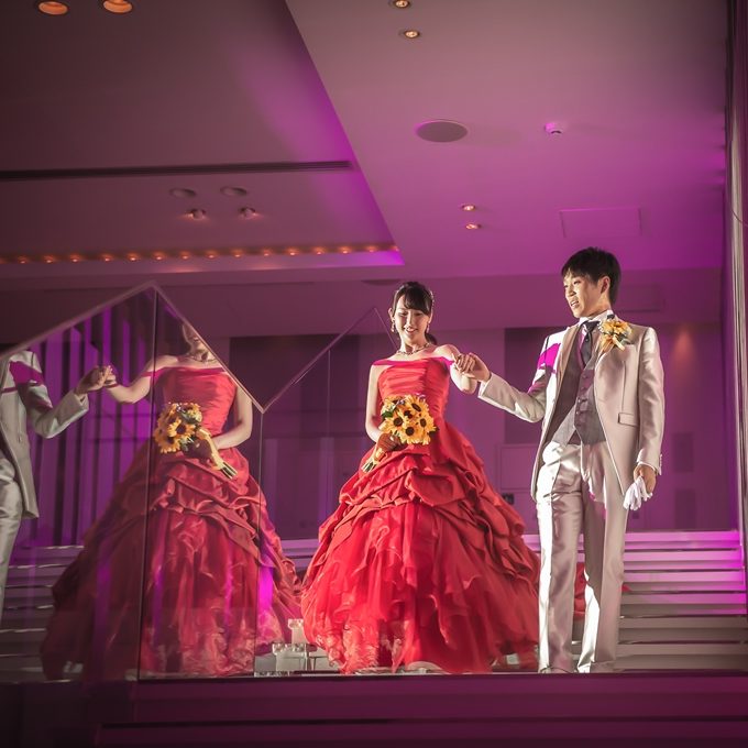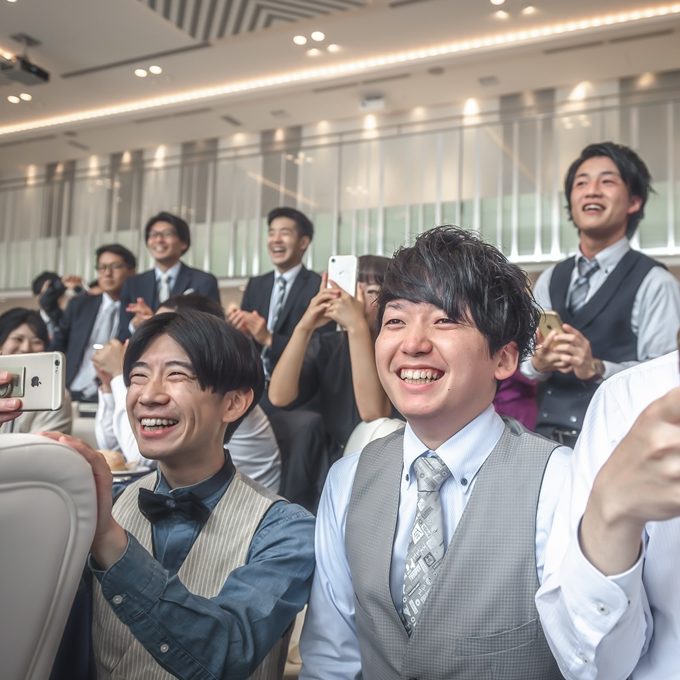 1つ目にこだわったところは音楽です。2人とも音楽が好きなので、2人で相談して場面に合わせて様々な曲を用意しました。当日は緊張しましたが自分達で決めた曲が流れてくると気分が上がりました。後日ゲストにも「当日使った音楽教えて!」と連絡をいただき好評でした。
