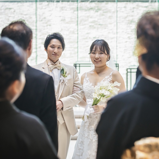 ふたりとも始めこそ緊張していましたが、披露宴になる頃にはリラックスして、全力で楽しもうと言っていました。皆がお祝いしてくれていることが伝わってきて何度も泣きそうになっていました。私たちだけでなく、ゲストの皆様にも楽しんでいただけたようで、私たちのテーマである、[笑顔と感謝のホスピタリティウエディング」は大成功に終わったのだと感じます。これ程に素晴らしい結婚式を迎えられたのも、担当していただいたウエディングプロデューサーの岩本さんを始め、式場スタッフの皆様の支えあってのことと思います。また、私たちを祝福してくれた全ての方にお礼を伝えたいです。