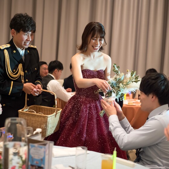 ゲストの皆さんからのサプライズも沢山あり、私たちが嬉しくて泣いてしまう場面が多くなってしまいましたが…ゲストの皆さんからも「凄く楽しかった。良い結婚式だった」と仰っていただきました。たくさんの方からお祝いの言葉も頂き、とても幸せな空間でした。新郎も謝辞で感極まり男泣きしてしまうほど(笑)