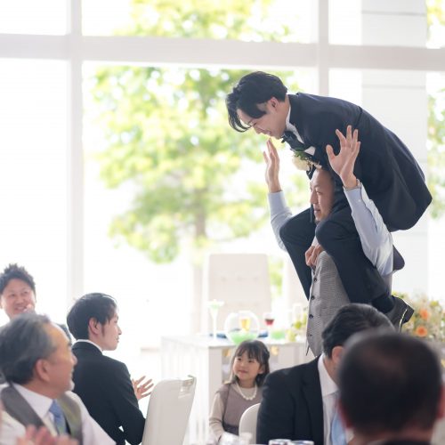 進行には、新婦のブーケトスだけでなく、男性ゲストも楽しめるように新郎のイベントも取り入れました。