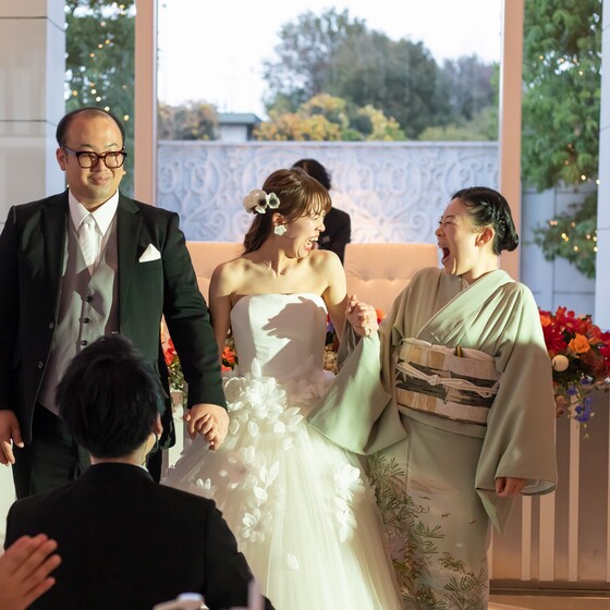 最後にまさかの新郎からのサプライズプレゼントでびっくりしましたが、笑いあり涙ありの本当に幸せな時間を過ごすことができました。毎日のように記録映像を見ていまだに余韻に浸っています。笑