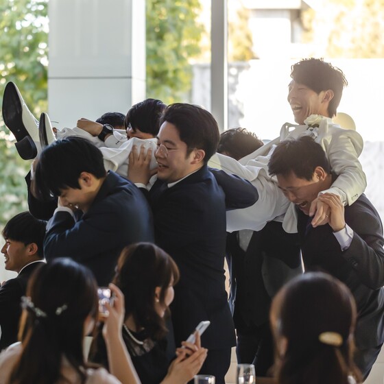 これはウエディングプロデューサーさんが私たちの希望を一生懸命に叶えようと準備してくれて、そこにたくさんのスタッフさんたちが力を貸してくれて実現したものだと思います。その結果、大切で大好きなゲストのみなさんのたくさんの笑顔が見れて、とても幸せな気持ちになれました。
