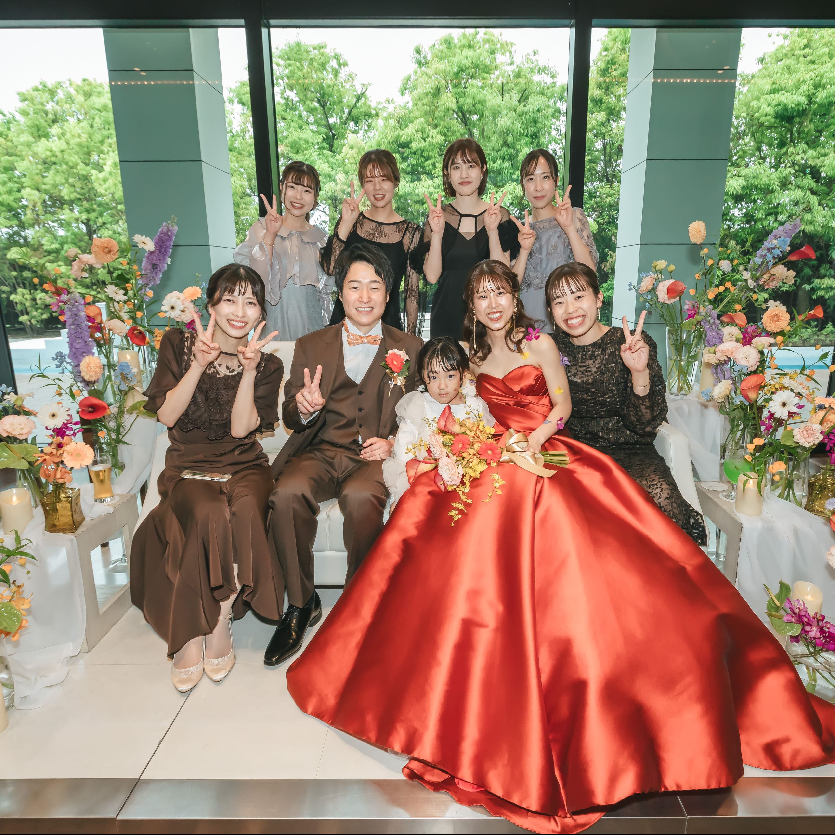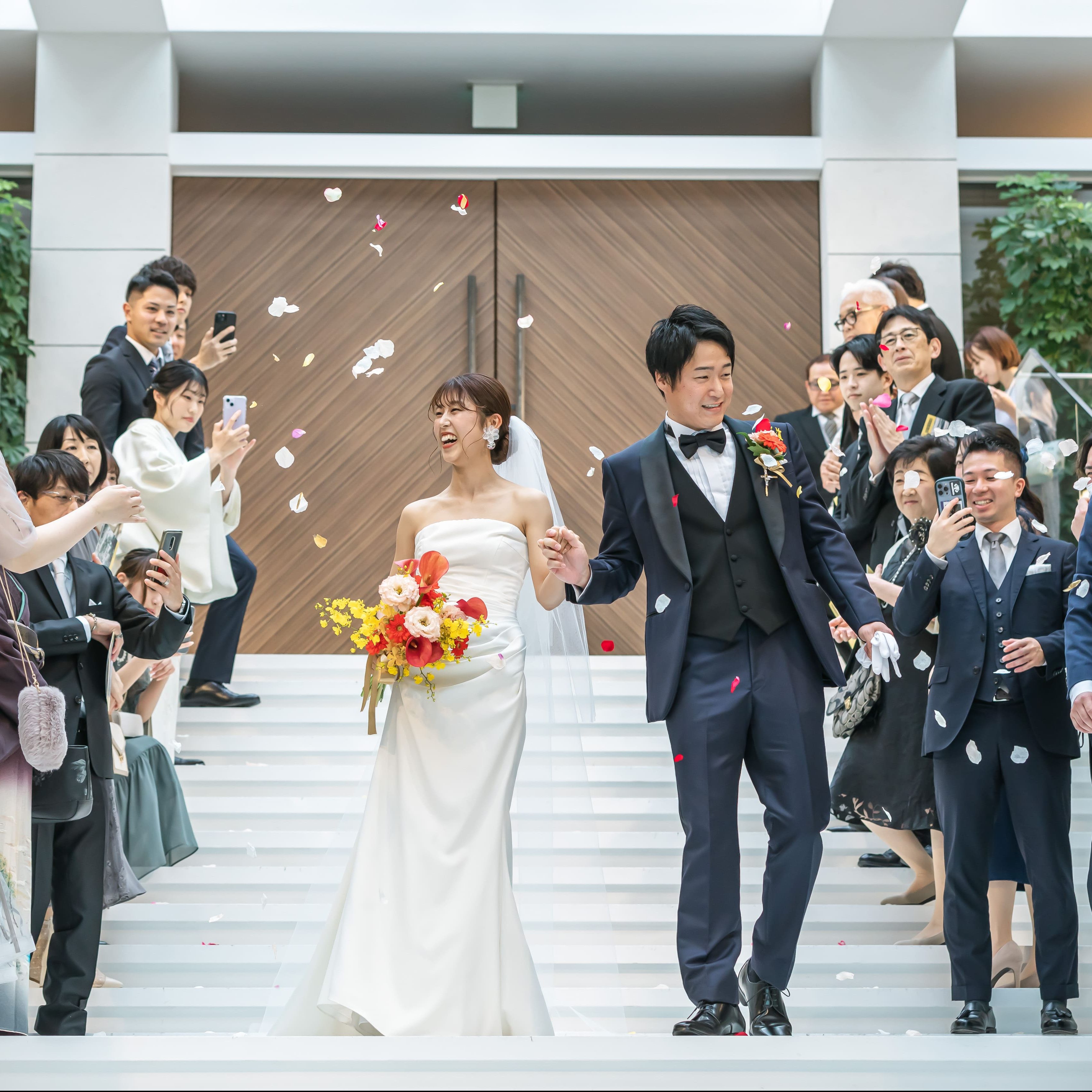 会場入りから送賓まで本当にあっという間に過ぎていきました。進行の一つ一つが進んで行く度に「楽しかったな」と思う反面、この一瞬はもう戻ってこない寂しさも感じました。人生でたった一度の結婚式。今までたくさん準備をしてきて「当日は、ゲストやザ・リーヴス プレミアムテラスのスタッフのみんなと全力で楽しむ!」と決めていたので、大好きな人達に囲まれながらとても楽しい幸せな時間を過ごすことができました!