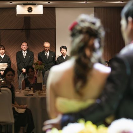 前日は式場で当日を迎えました…笑。(準備していたら日付が変わりました♡)記録更新したそうです!!笑。それから帰ってから両親への手紙を書き、睡眠は四時間…。手紙の確認では、最初の一行で文字が見えなくなり旦那にバトンタッチ。それを読みながら旦那も号泣。二人して泣いていました〜。本当に今日結婚式なのかな?という気持ちで眠りにつきました。朝起きて、私はフェイシャルへ。午後からの式だったので時間には余裕がありました。フェイシャルしながら少しずつ緊張してきて、式場についてメイクが始まった頃には、あっ本当に結婚式するんだなぁという実感が湧いてきました。ヘアメイクの方に、始まっちゃうと一瞬なので楽しんで下さいねと言われ、1日笑顔で楽しもう!!と思いました♡…本当に一瞬でした〜泣。終わったあと、フルコースがお部屋で食べれるのですが、1番に食べたサーモンが今まで食べたサーモンの中で1番おいしく感じました!!