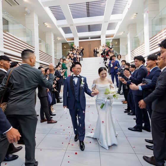 チャペルでの入場の際は緊張していましたが、祭壇上で振り返った時にたくさんのゲストの姿を見て、うまく言葉では言い表せないのですが、すごく感動したのを覚えています。