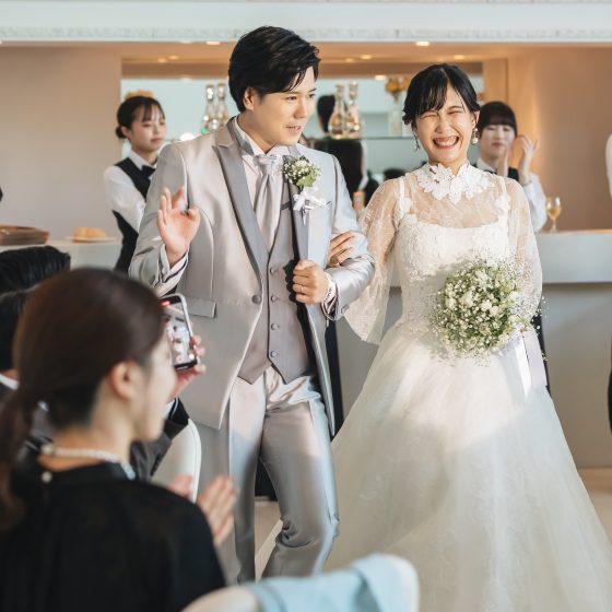 ぎりぎりまで準備をしていて、当日まで実感がありませんでしたが、当日、朝早くにも関わらず担当の新屋さんが笑顔で迎えてくれて、「結婚式をするんだ」と実感できました。